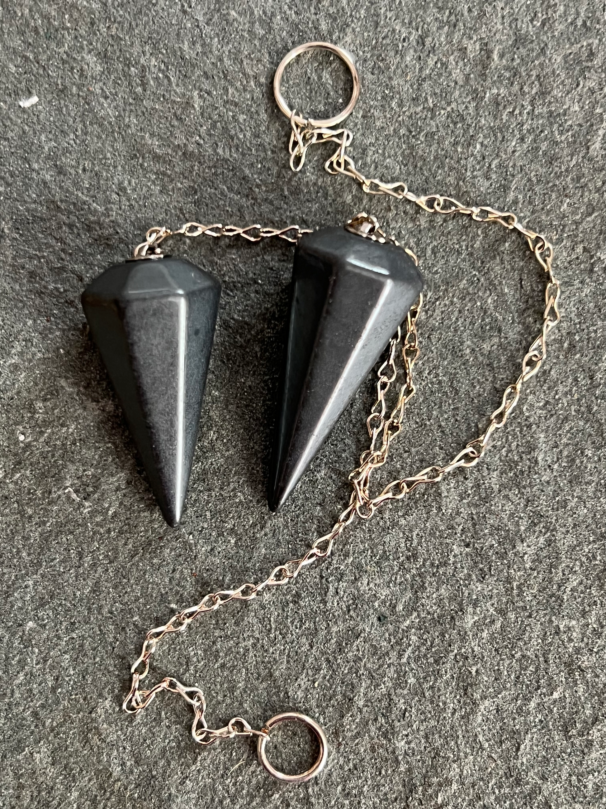 We love a heavy pendulum and these hematite pendulums fit the bill at around .21 ounces each. Most crystal pendulums tend to be around .10 oz.
